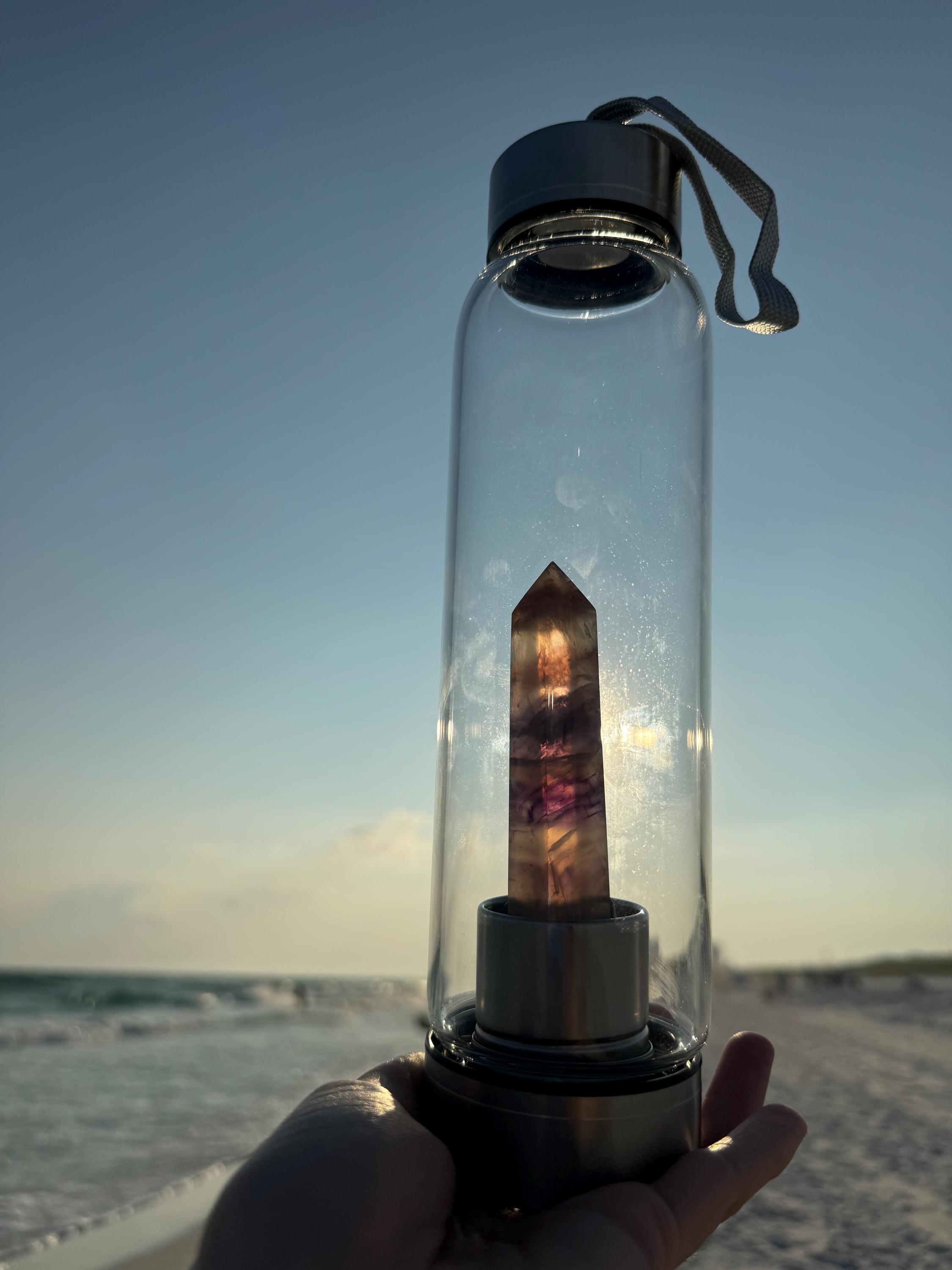 Introducing the Fluorite Obelisk Water Bottle with Cover - the perfect way to stay hydrated and vibe up your aura at the same time! This mystical water bottle features a stunning fluorite obelisk that will bring all the good juju your way. Plus, the included cover keeps your drink cool and your crystal protected. Hydration has never been so magical! Get yours today and watch as the positive energy flows.