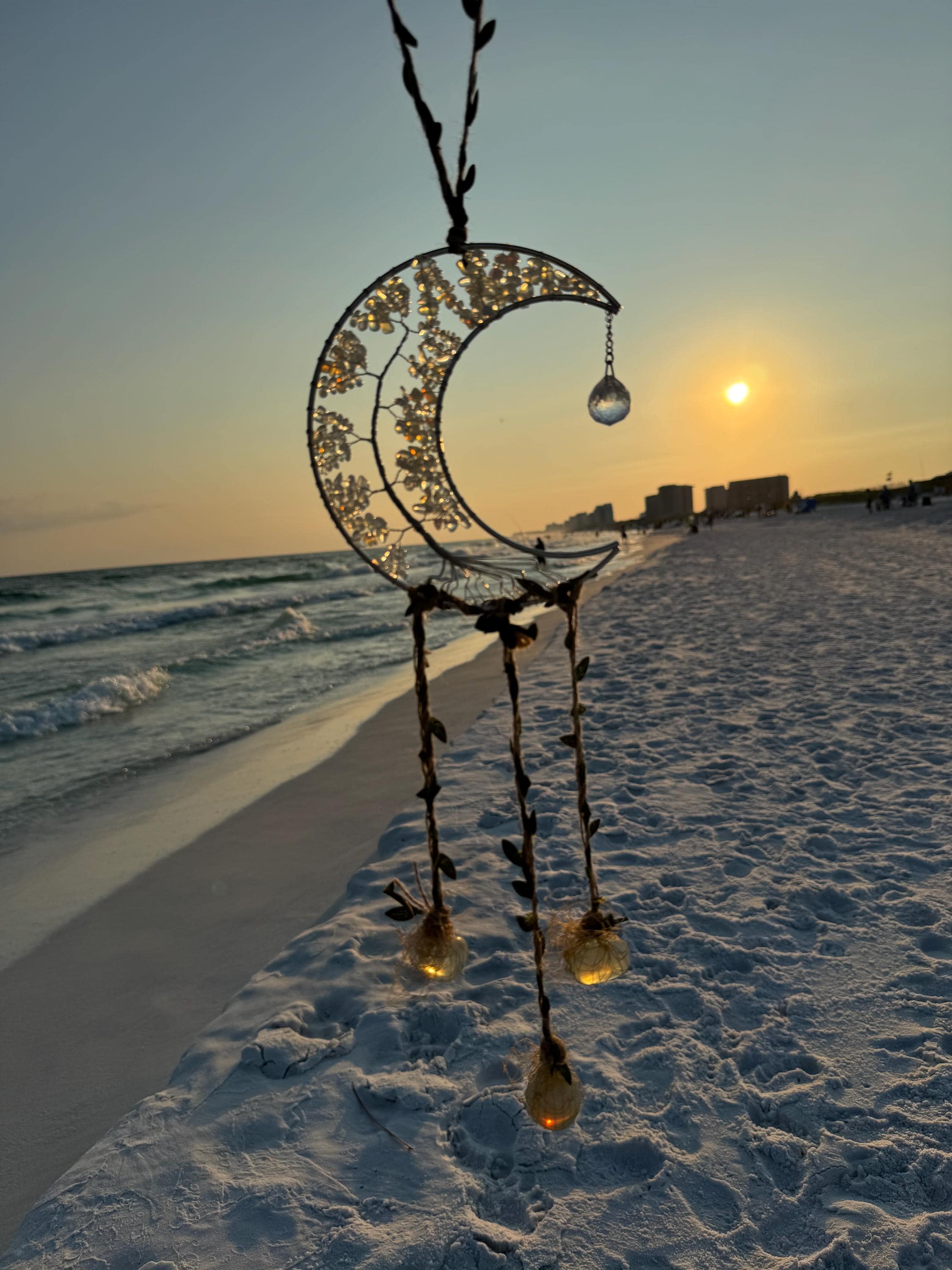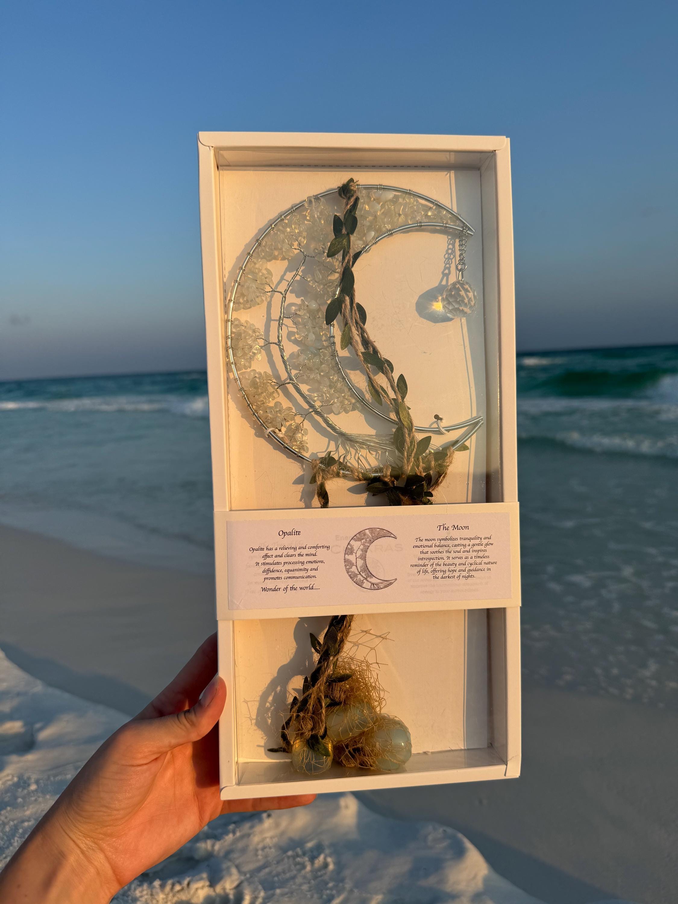 Brighten up your space and catch some good vibes with our Opalite Moon Shaped Sun Catcher! This mystical beauty will bring a touch of magic to any room, reflecting the light in mesmerizing ways. Hang it in your window and watch as the shimmering opalite stone works its cosmic charm. Whether you're a seasoned crystal collector or just looking to add a little sparkle to your life, this sun catcher is sure to bring a smile to your face (and maybe even a bit of luck)!