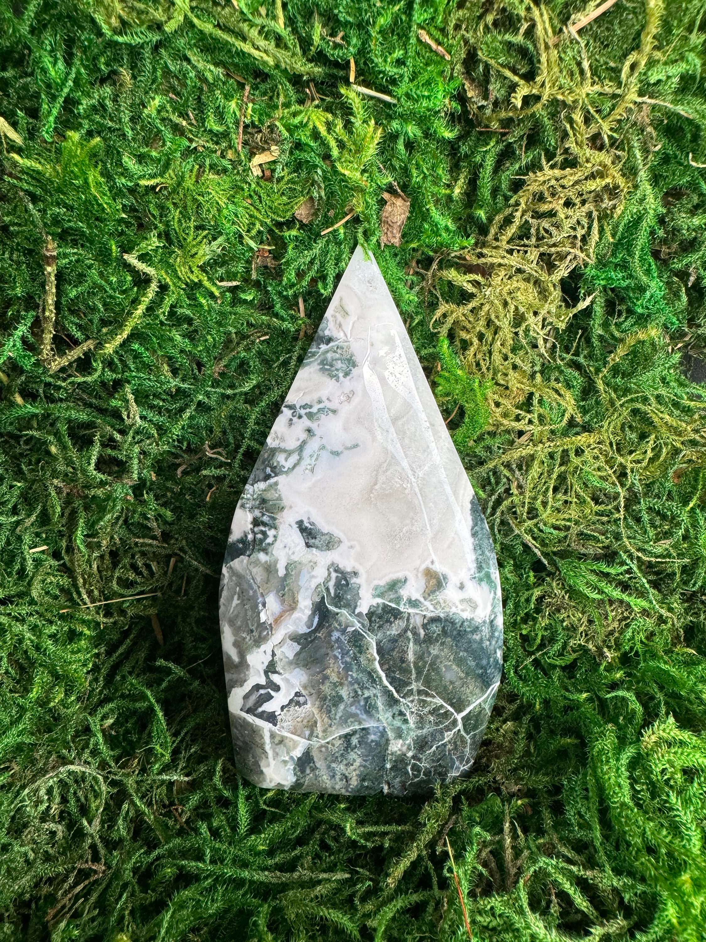 **Why You’ll Love It:** Each moss agate flame is a natural work of art, with its own unique patterns and druzy sparkle, ensuring no two pieces are exactly alike. Sourced with care and crafted to highlight the stone’s natural beauty, these gemstones are a must-have for anyone who cherishes the magic of crystals.