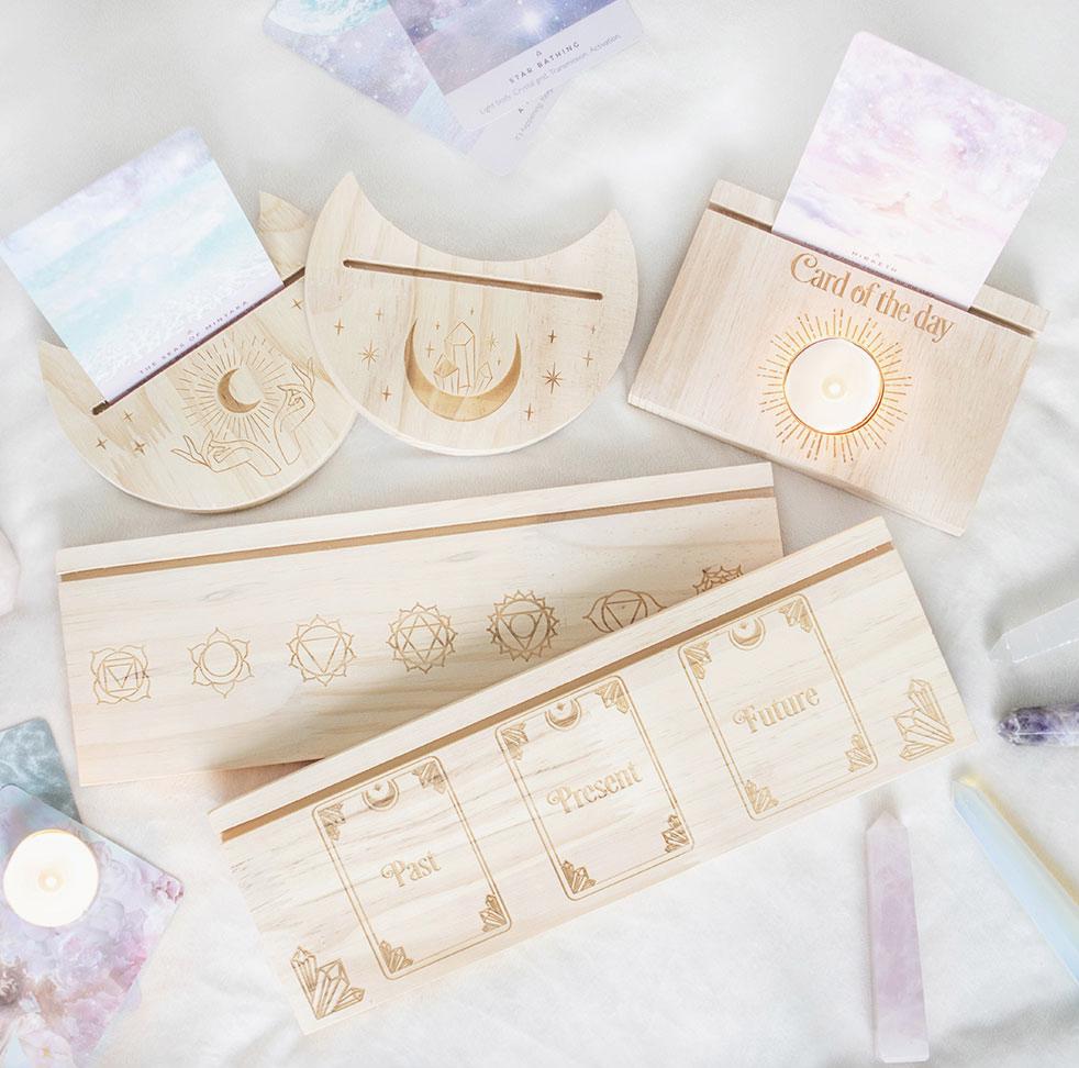 Display a daily tarot card reading with this wooden tarot card stand, allowing the meaning of the card to truly resonate throughout the day. Featuring a contemporary design and with space for a tealight candle, it's sure to add an element of spiritual significance to any space. Tarot cards not included.