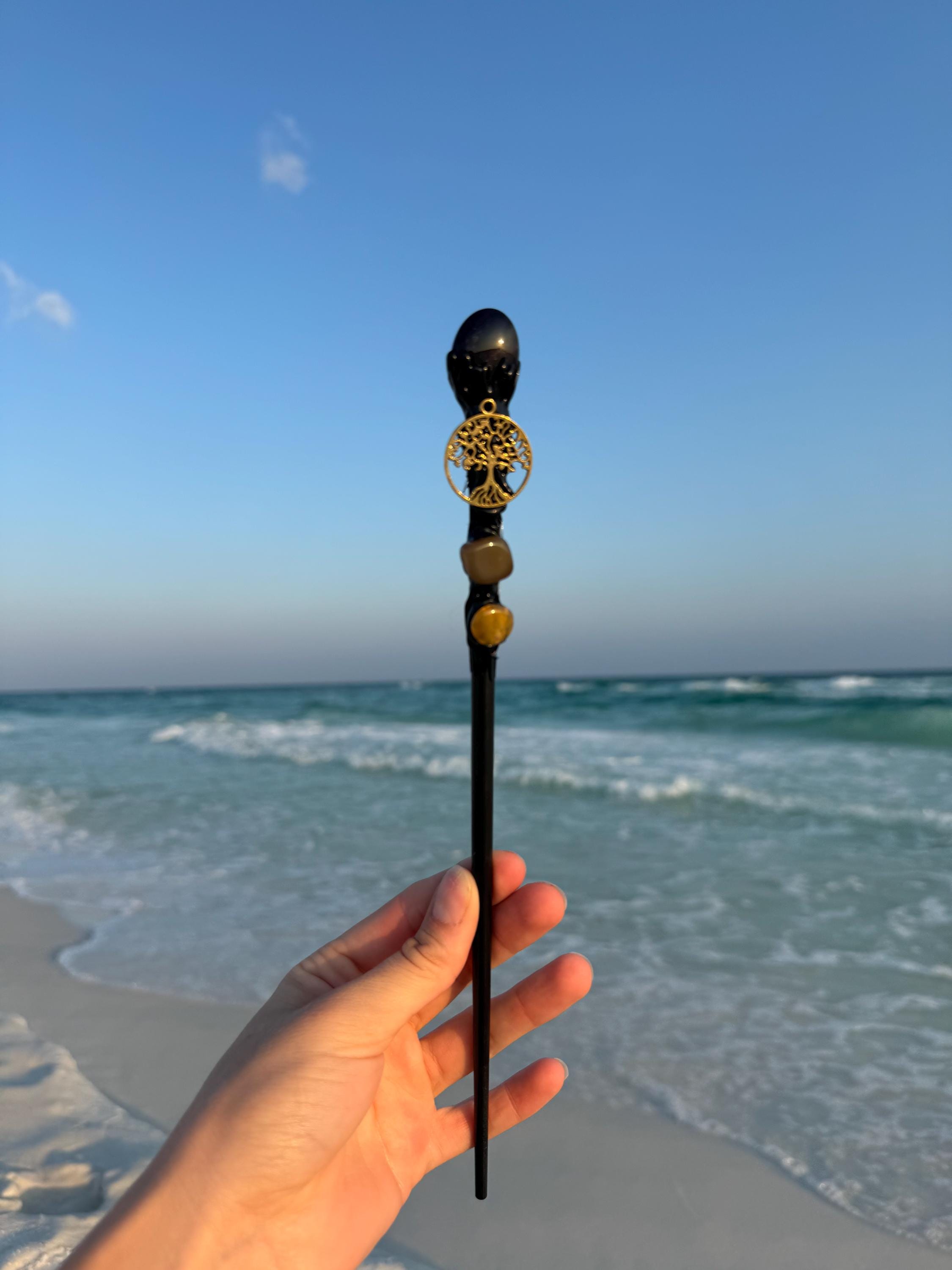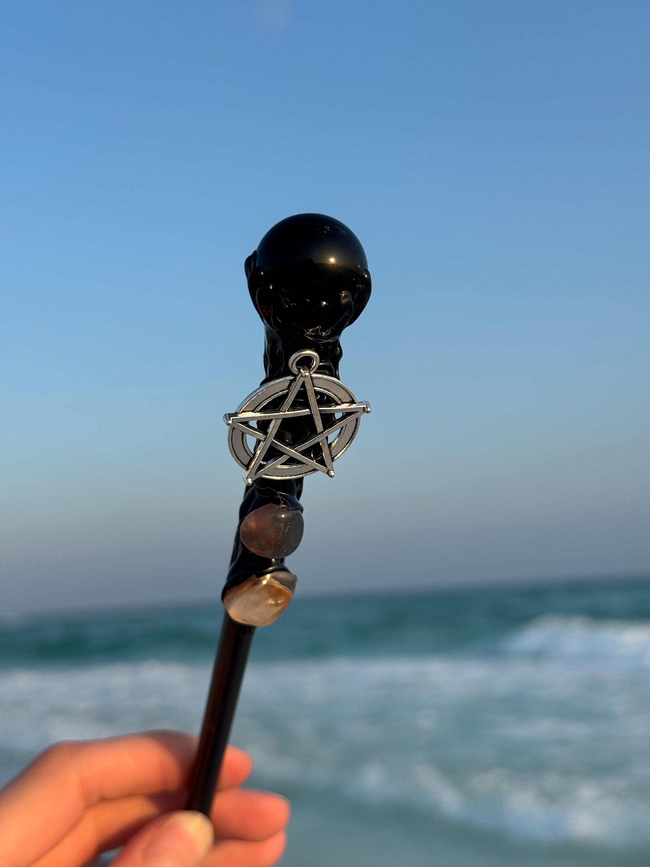 Unleash your inner magic with this set of 5 one-of-a-kind crystal wands! Each wand features a distinct crystal tip, including black obsidian, rose quartz, and more, paired with a sleek wooden handle. Adorned with enchanting charms like a dragon, pentacle, and tree of life, along with additional small crystals, these wands are perfect for energy work, meditation, or spell casting. Whether you're drawn to the grounding energy of obsidian or the loving vibes of rose quartz, there's a wand for every intention. Each comes cleansed and charged, ready to elevate your spiritual practice.