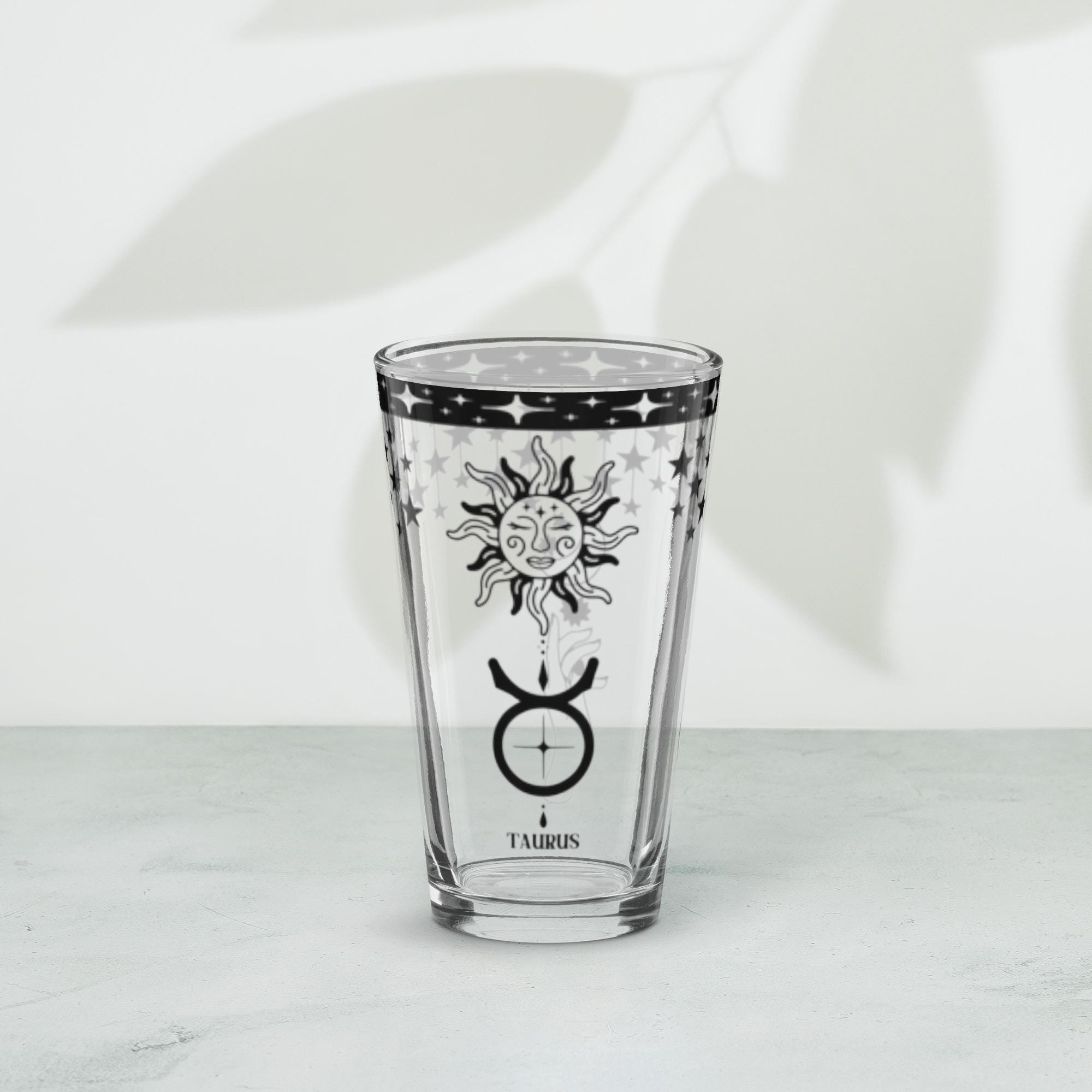 Taurus Zodiac Pint Glass with Celestial Sun and Moon Design