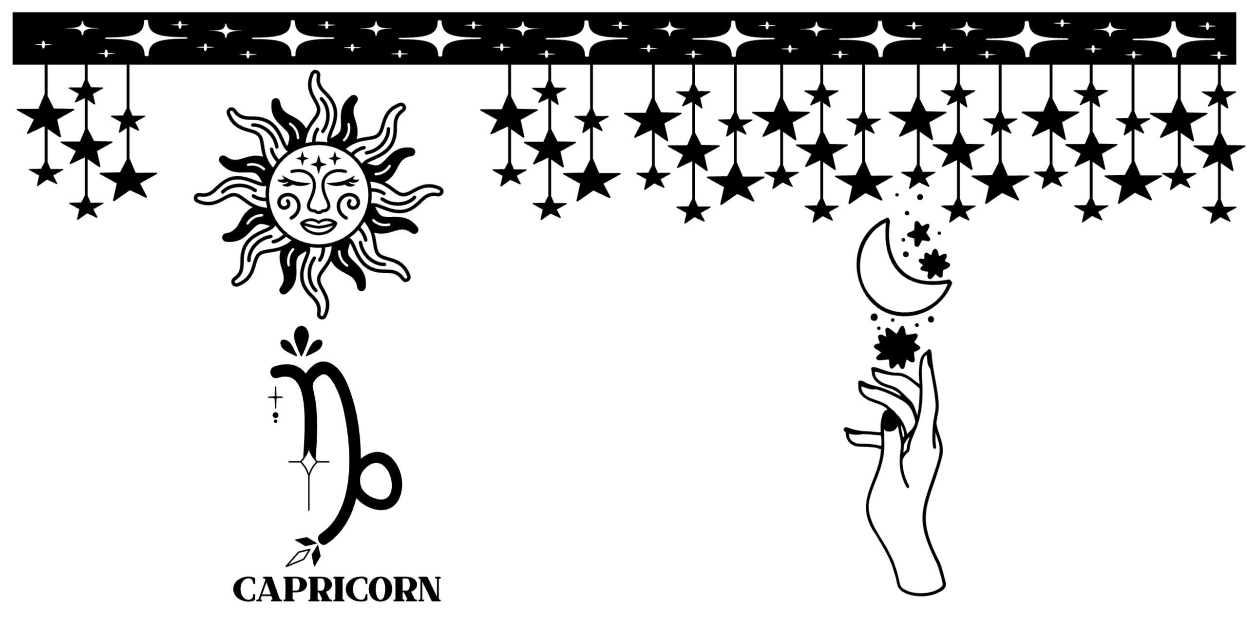 Unique Design: Highlights the Capricorn symbol, sun, moon, and star patterns for a cosmic aesthetic.