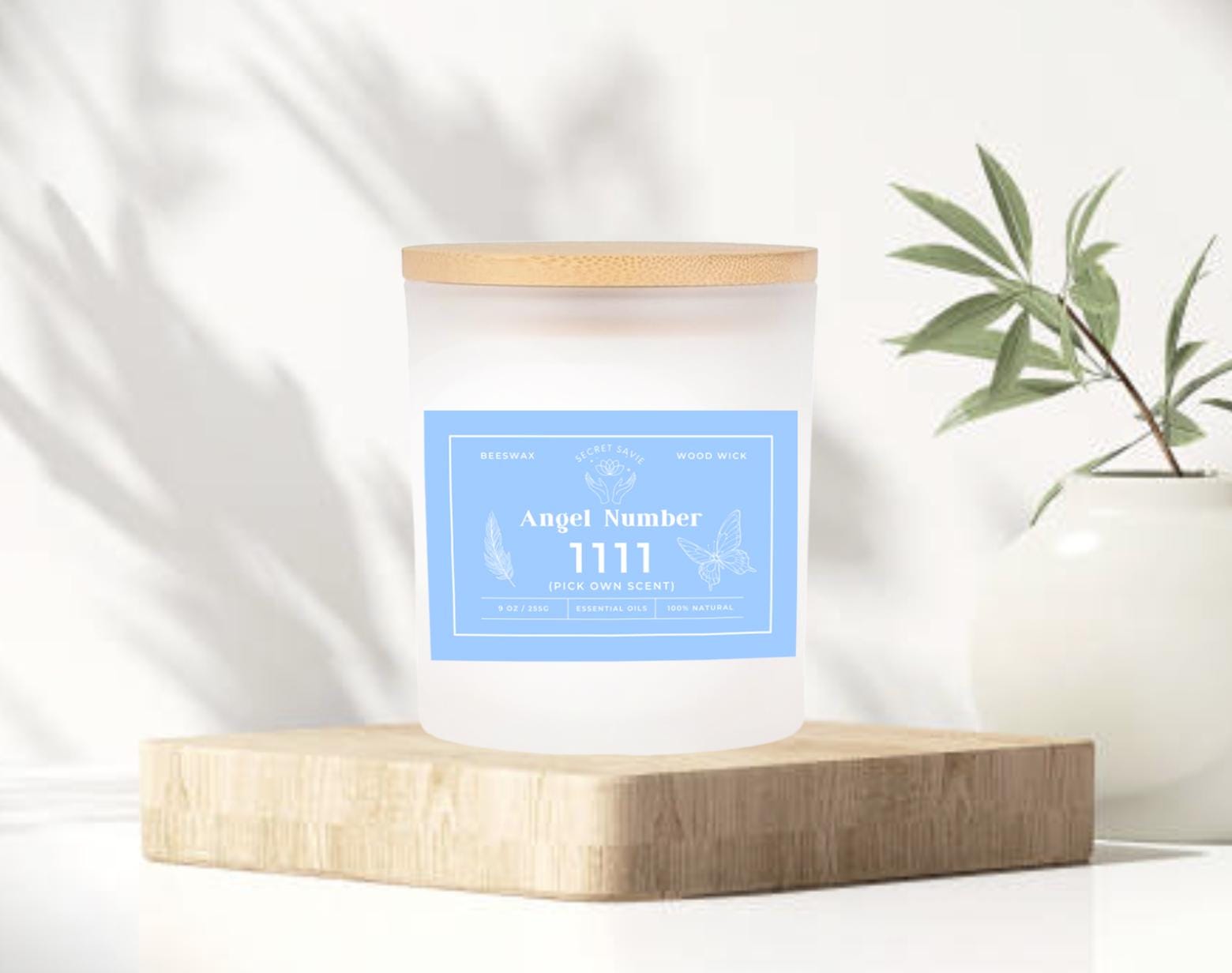 Unleash some cosmic magic with our Pick Your Own Angel Number & Scent Beeswax Candle—9 oz (255g) of pure, hand-poured bliss with a crackling wood wick! Infused with 100% natural essential oils, this frosted jar beauty lets you pick your own angel number (1-4 digits—think 7, 12, 333, or 1234) and choose a scent that screams YOU: lavender, vanilla, sage, rose, cedar wood, zesty lemon, or unscented.