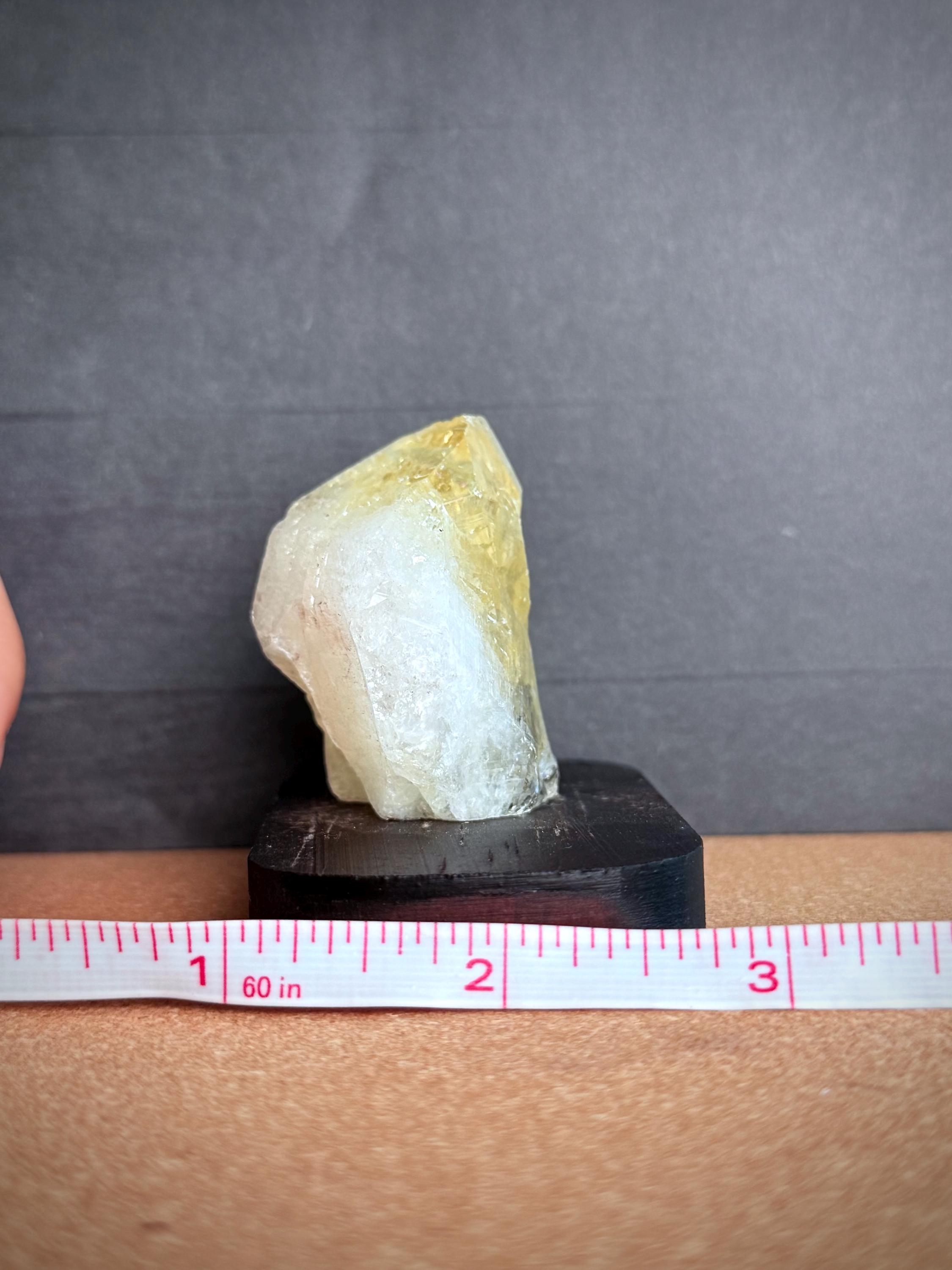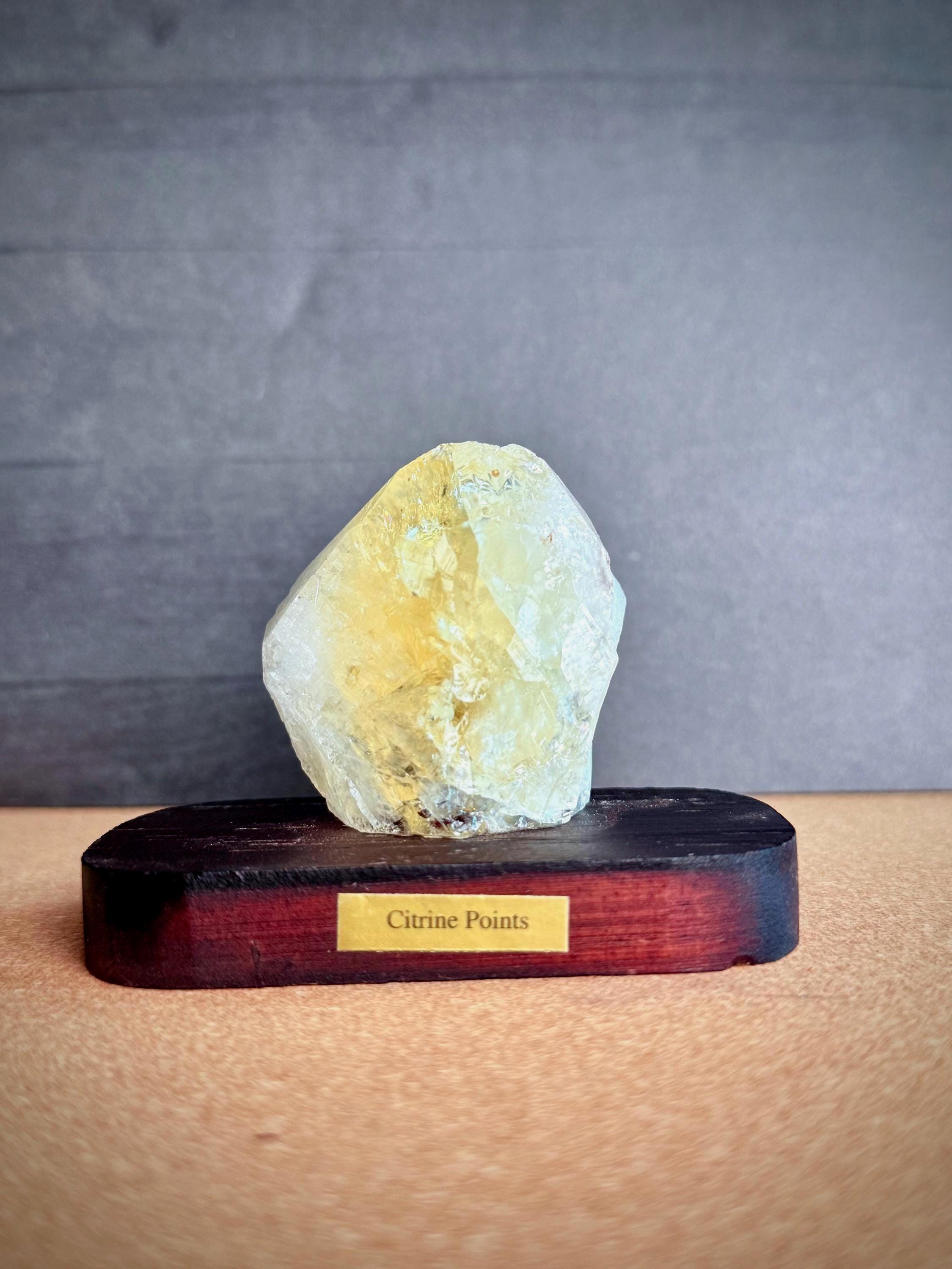 Illuminate your space with this dazzling Citrine Point Crystal, a radiant natural formation with vibrant golden hues. Mounted on a polished wooden base, its uplifting energy makes it a perfect centerpiece for attracting abundance and joy to any environment.
