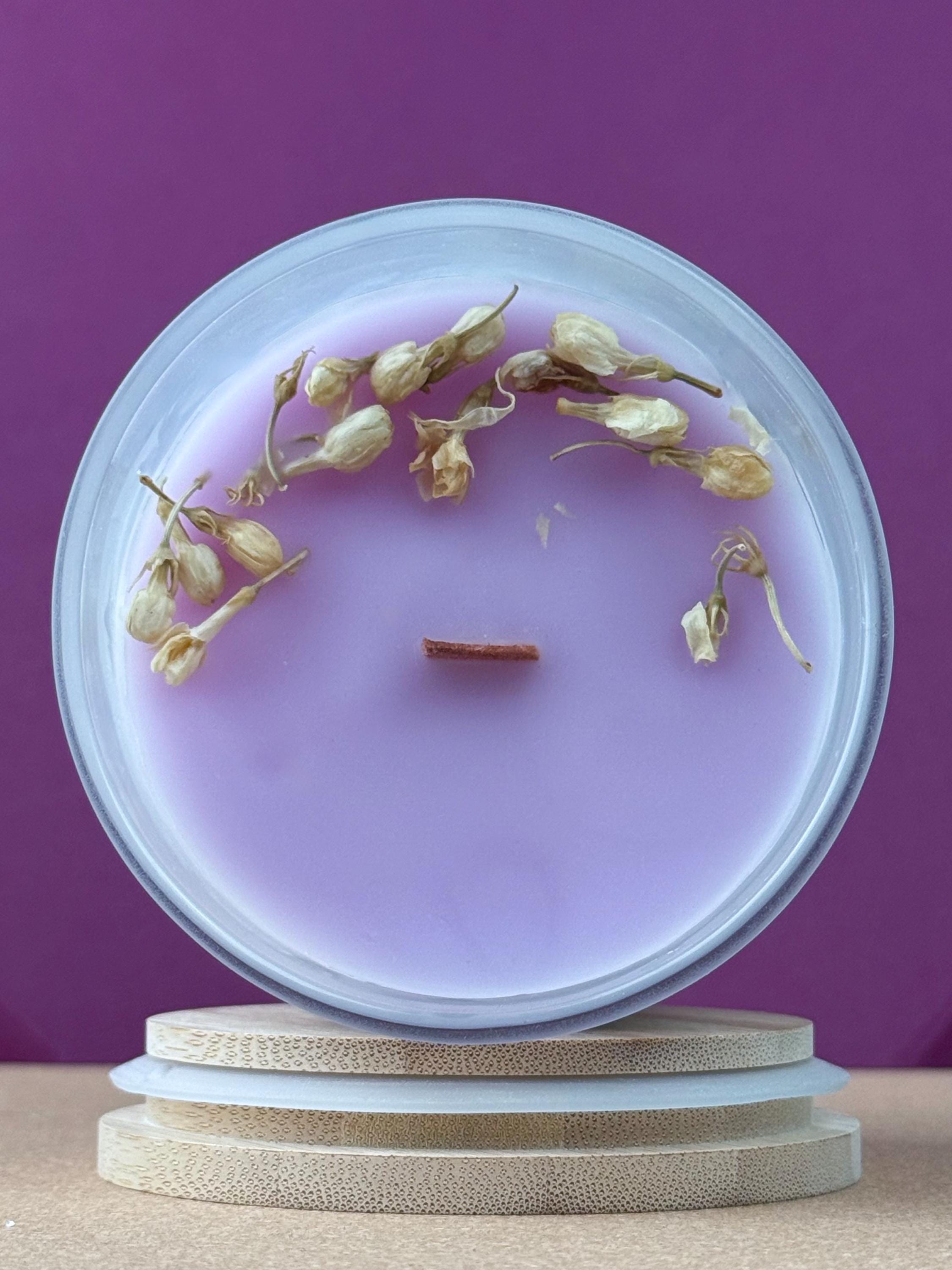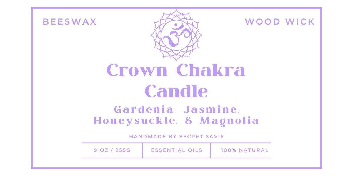 Open your mind and connect to divine wisdom with our Crown Chakra Candle, a handcrafted creation by Secret Savie. Designed to balance your crown chakra, this 100% pure beeswax candle features a soothing wood wick and a delicate blend of essential oils—gardenia, magnolia, jasmine, and honeysuckle—offering a floral, uplifting aroma that fosters peace and enlightenment. Decorated with dried jasmine buds, it adds a touch of natural elegance to your sacred space.
