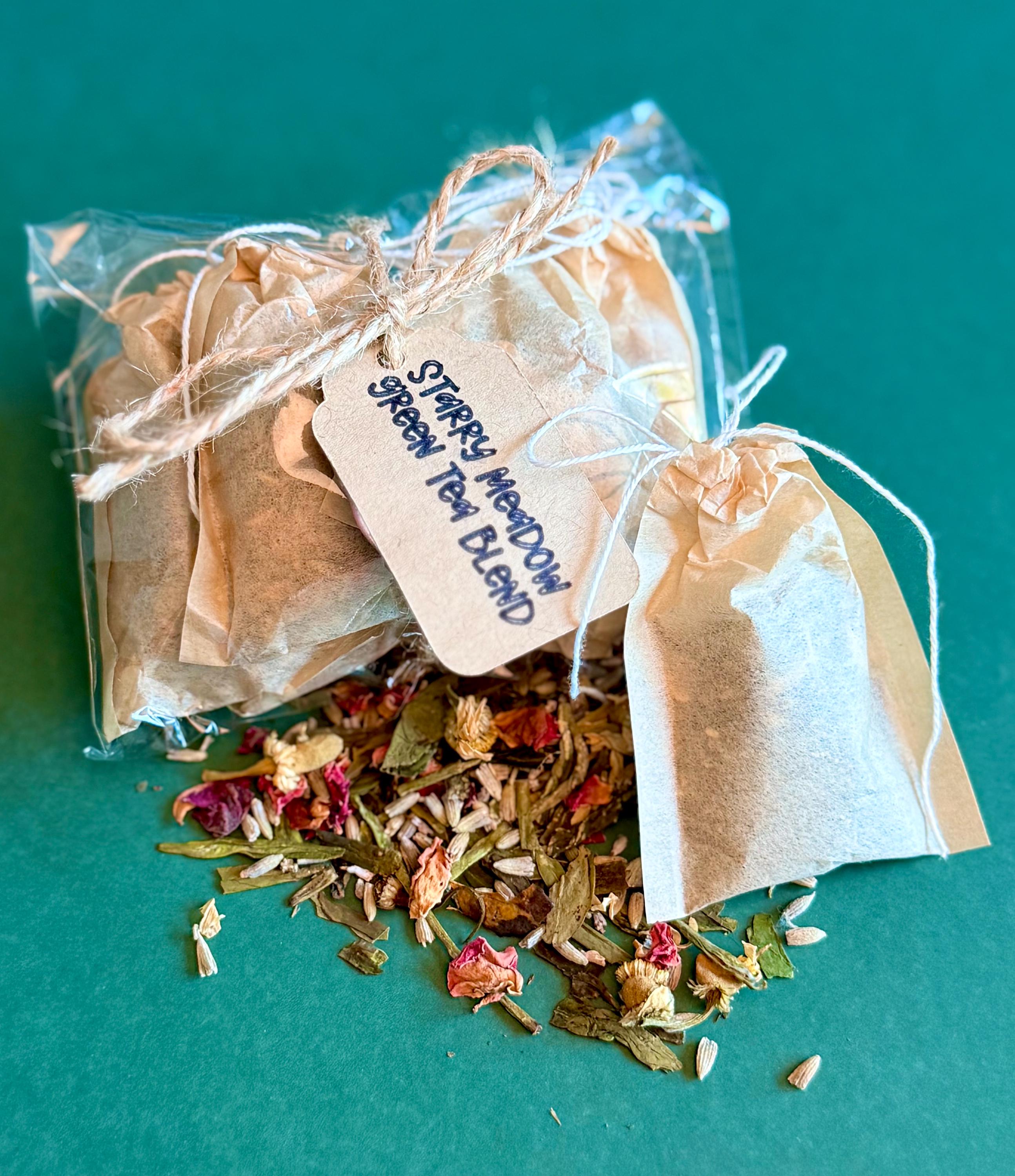 2. Measure Tea: Use 1–2 teaspoons of Starry Meadow blend per 8 oz of water, depending on desired strength. For a stronger floral note, lean toward 2 teaspoons.